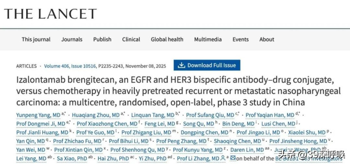 ◎ 张力教授开展的iza-bren鼻咽癌3期临床研究成果被国际顶级医学期刊《柳叶刀》发表。/ 图:《柳叶刀》官网